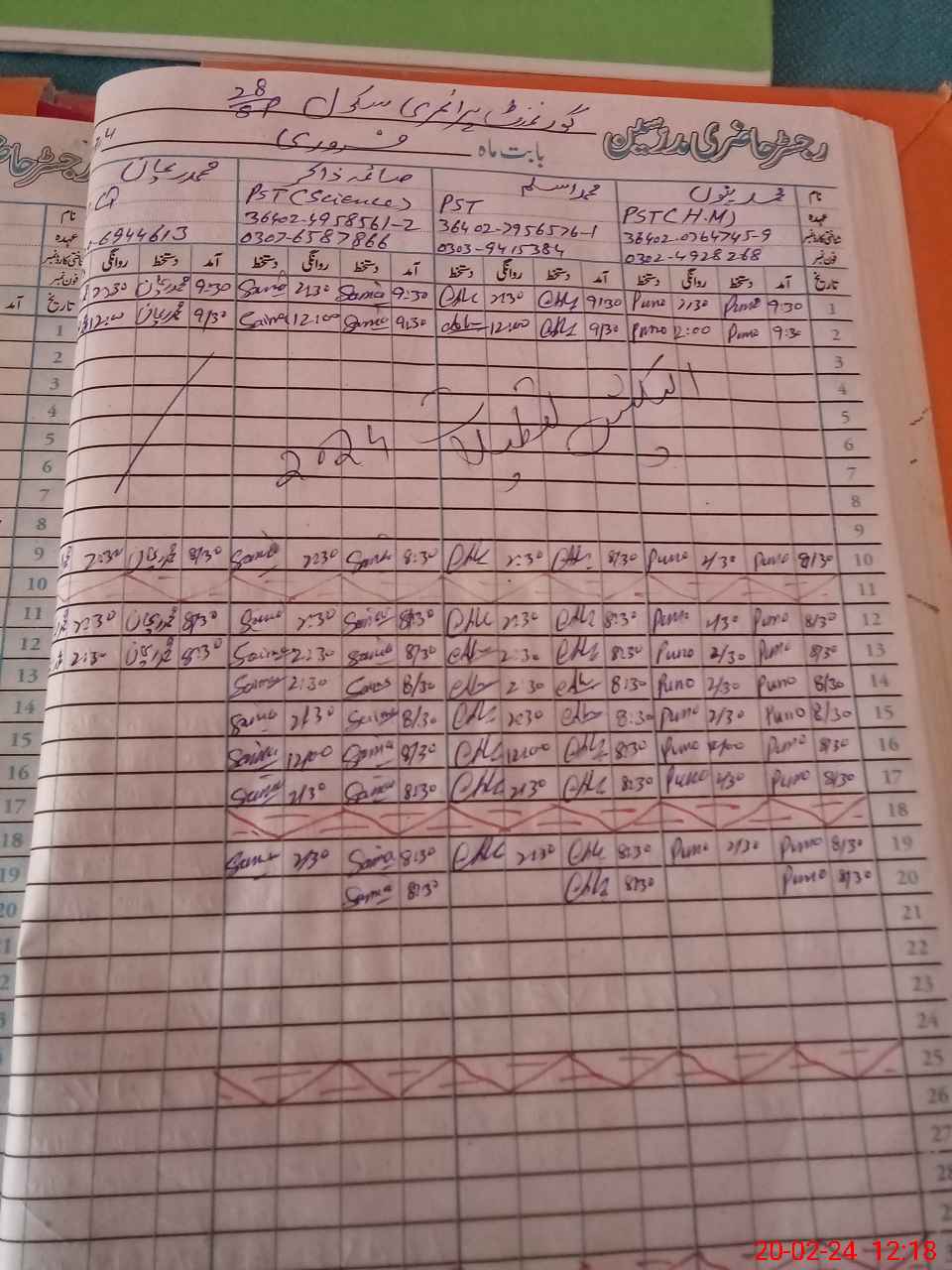 | Name: MU**** PU**** Designation: (School Headmaster's/Headmistress's) PST Phone/Cell Number: 03**** |