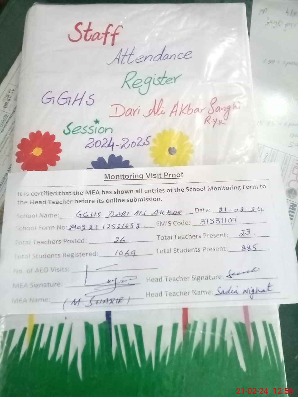 | EMIS Code: 31331107 | Name of School: GGHS DARI ALI AKBAR SANGHI | |||