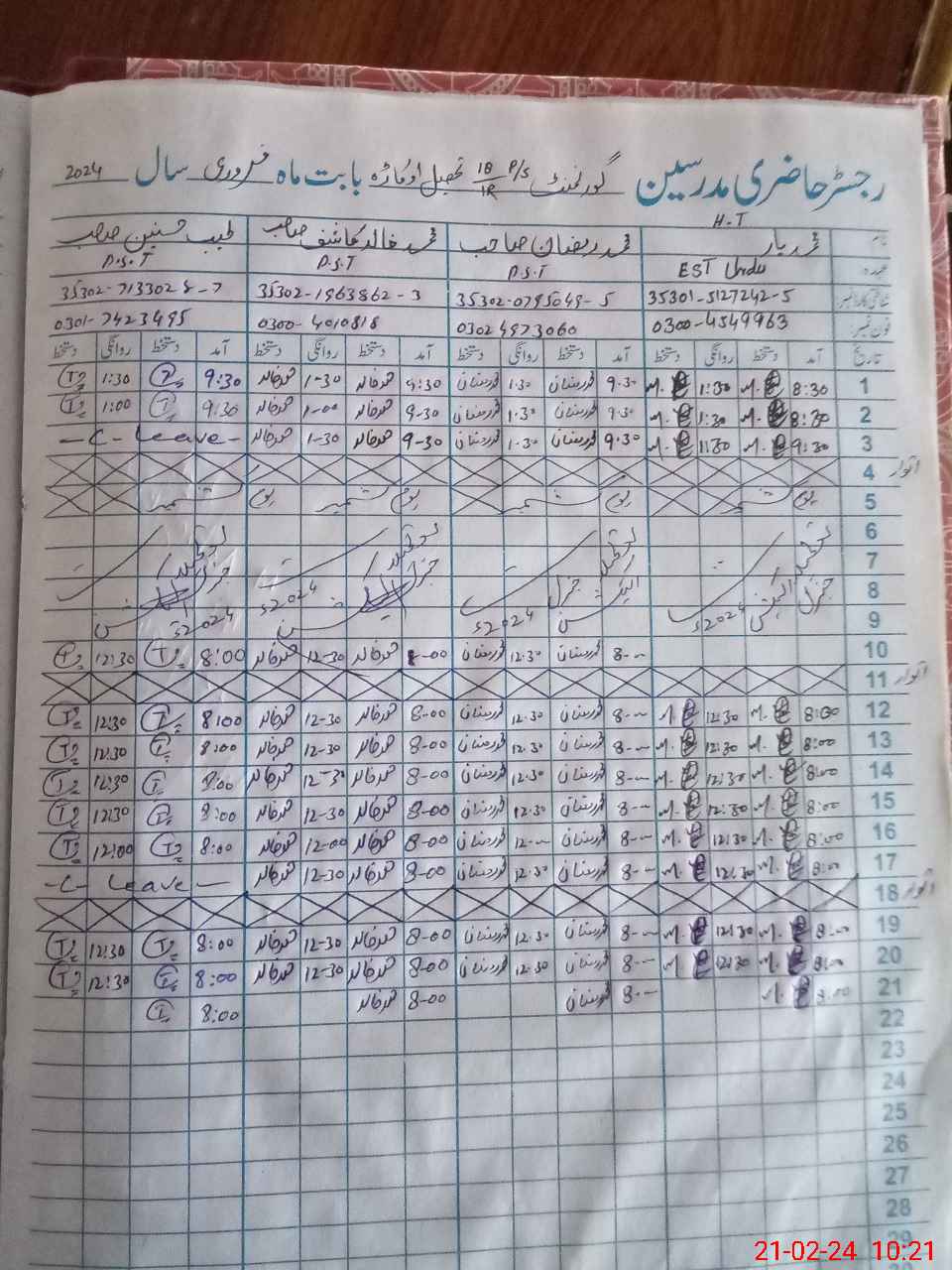 | Name: Ta**** Ha**** Designation: (School Headmaster's/Headmistress's) PST Phone/Cell Number: 03**** |