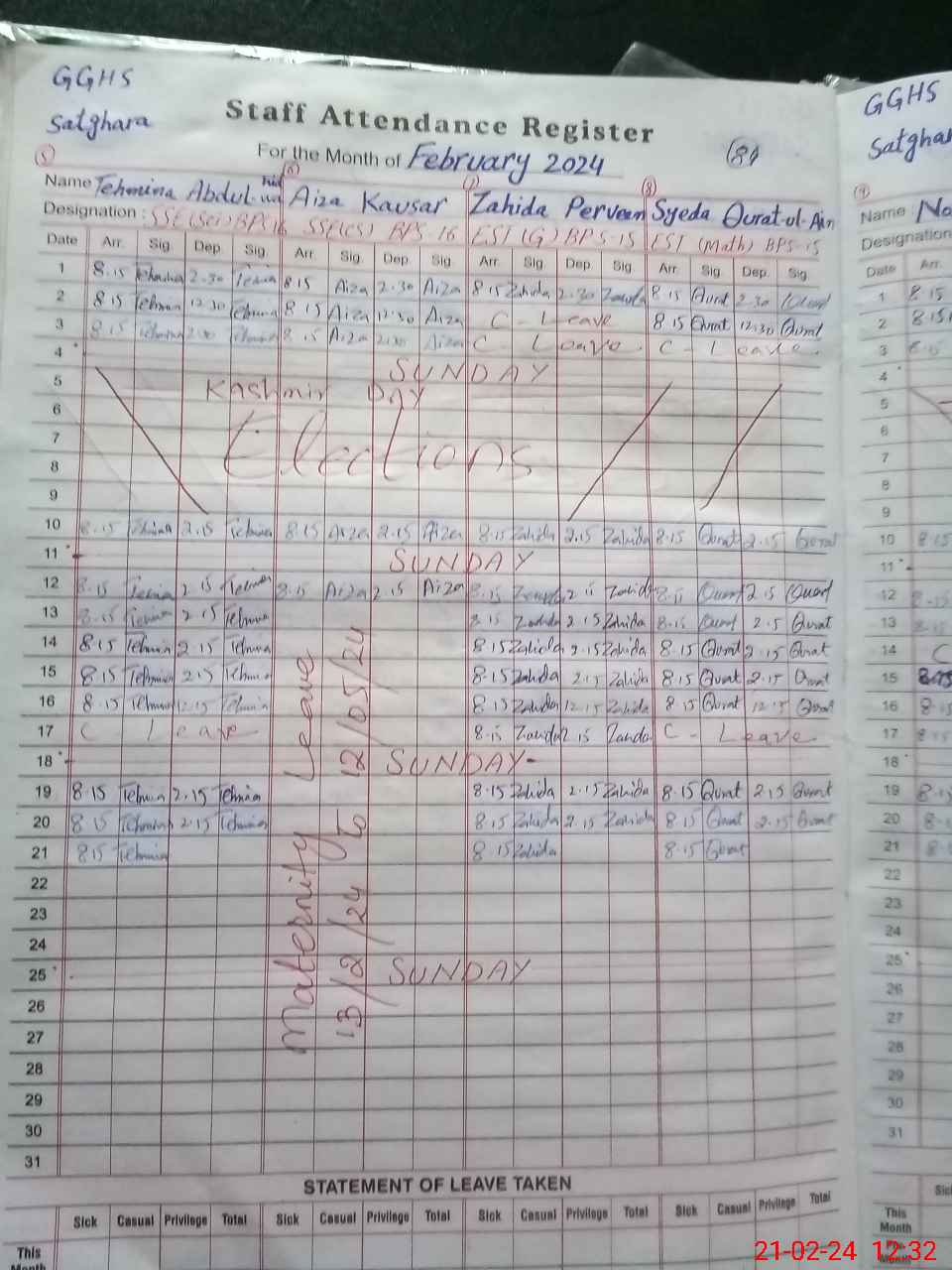 | 35**** | Ja**** Sa**** | 1 | 22 | 0 | 0 | 22 | 0 | 0 | 0 | 0 | 0 | Maternity | |