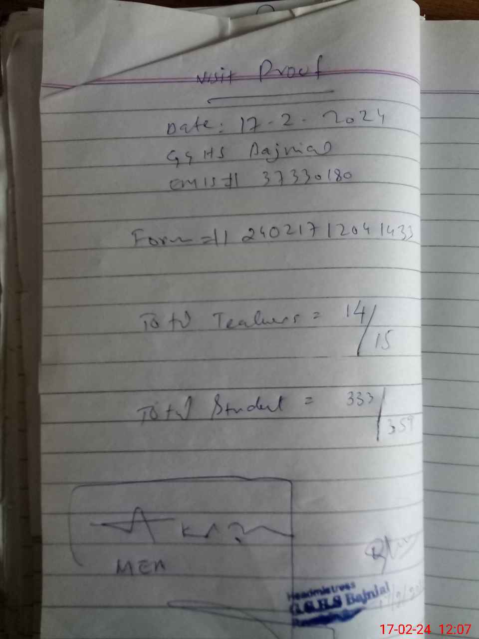 | Attendance Register | Head Teacher | MEA with School | Visit Proof |