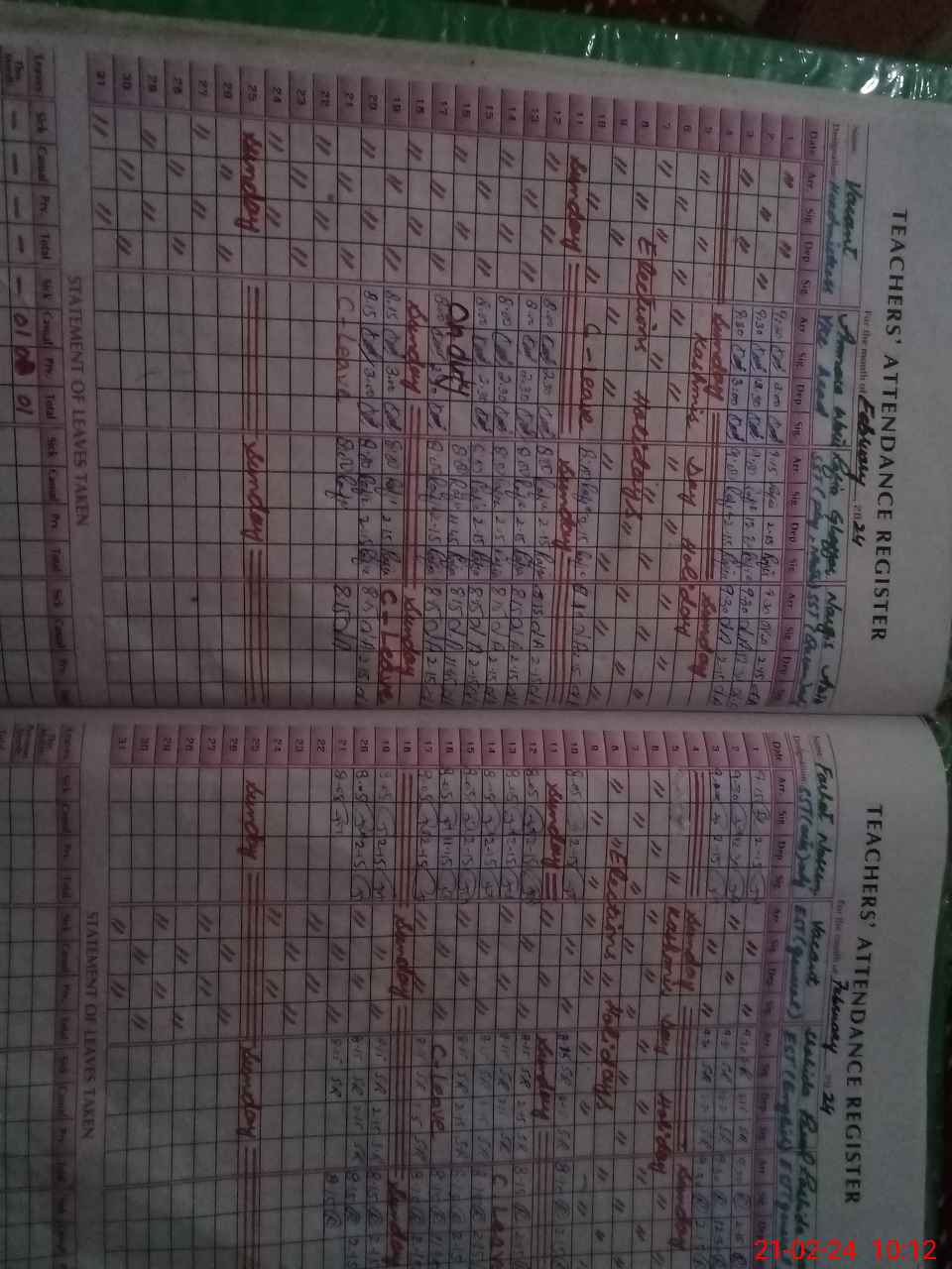 | Leave | Duty | Absent | Maternity | Medical | Ex- Pak |