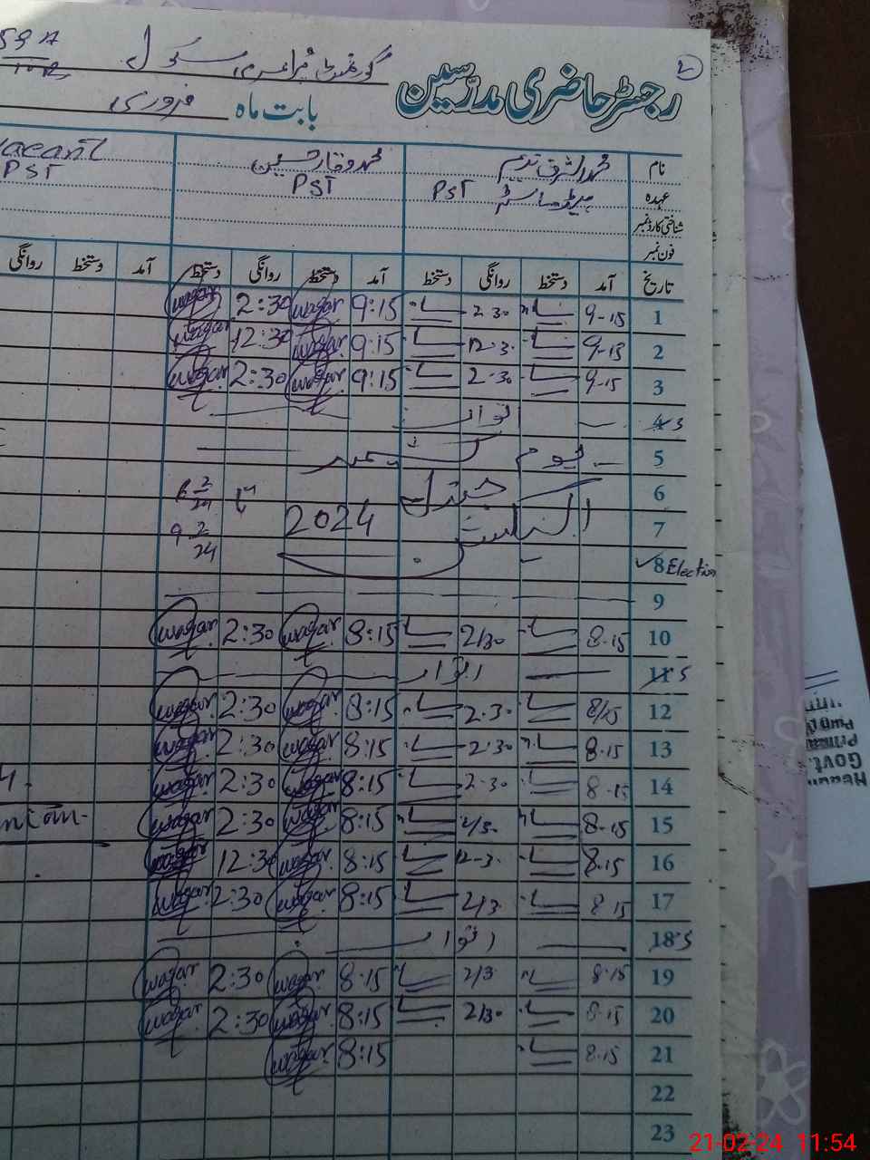 | Name: M.AS**** Designation: (School Headmaster's/Headmistress's) PST Phone/Cell Number: 03**** |