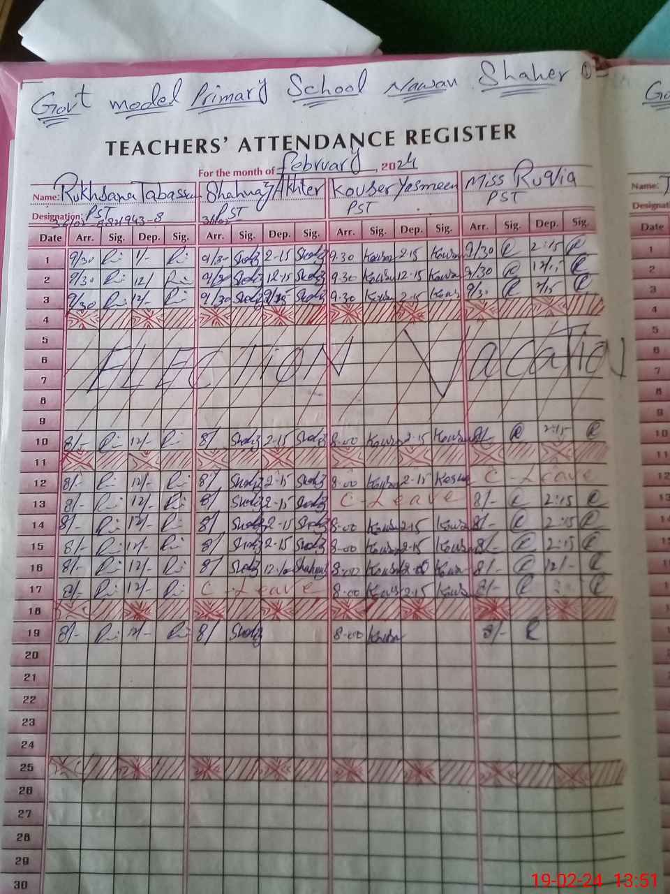 | 36**** | Sh**** Ak**** | 1 | 1 | 0 | 0 | 0 | 0 | 0 | 0 | 0 | 0 | 0 | Absent (Un-Authorized) |
