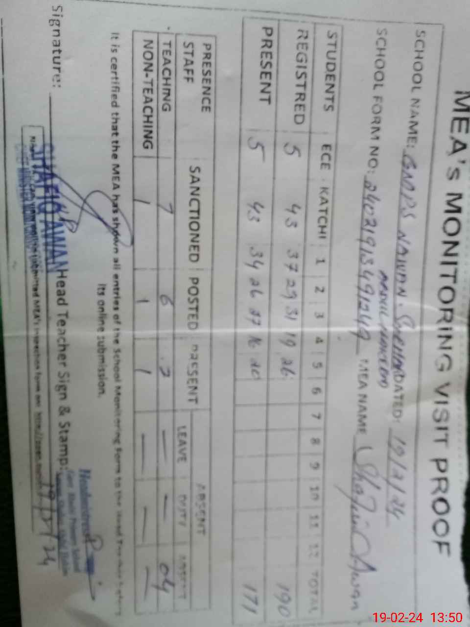 | Certified that this School was Inspected by the Undersigned MEA/DMO Today and the Information Stated Above is as Per Record. | |||||