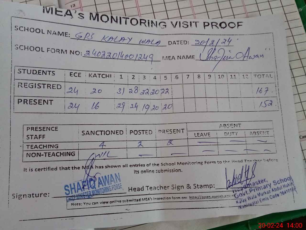 | EMIS Code: 36410566 | Name of School: GPS KALAY WALA, MOUZA JALEEL PUR, ABDUL HAKIM | |||
