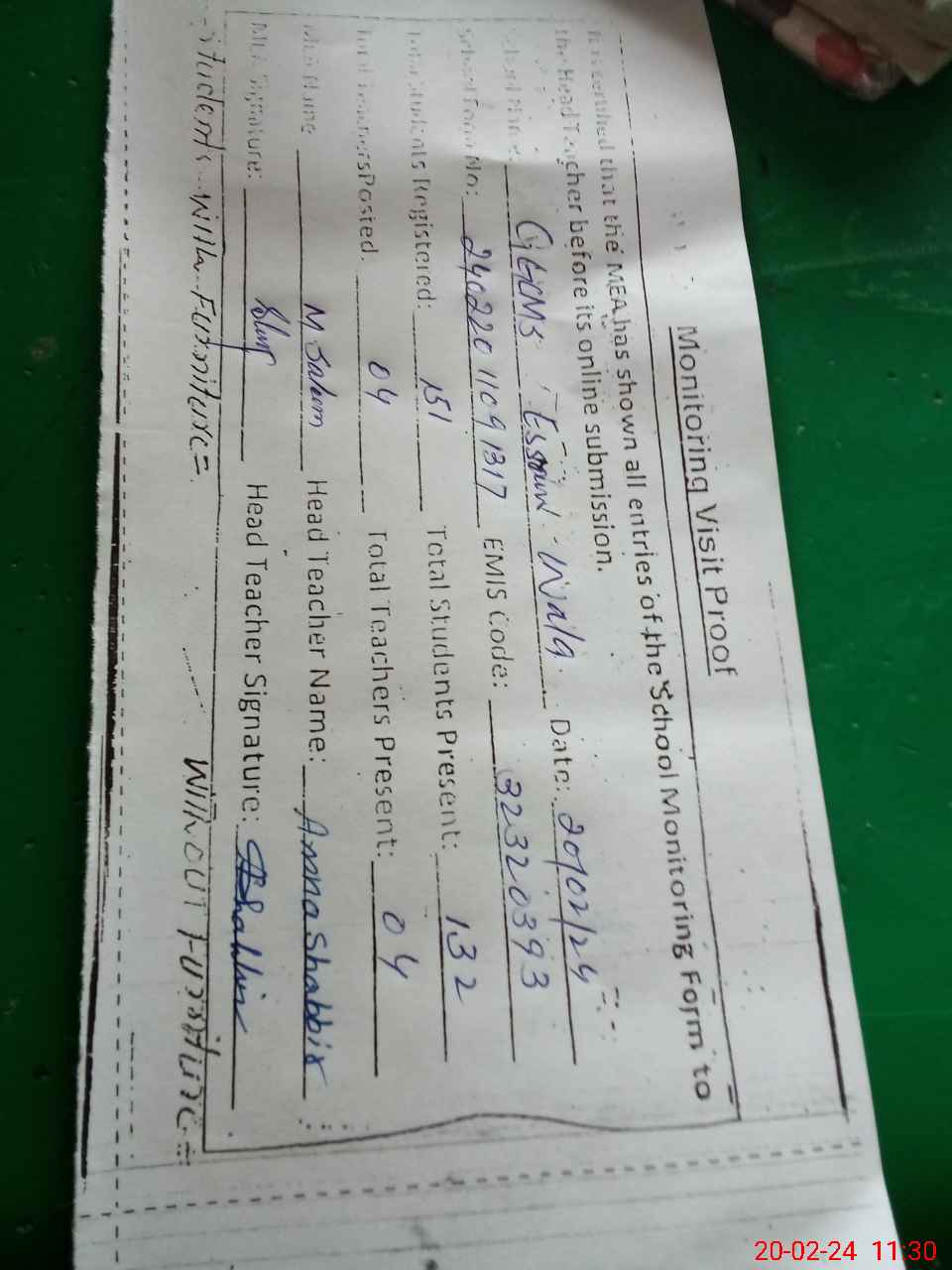 | EMIS Code: 32320393 | Name of School: GGCMS EISAN WALA | |||