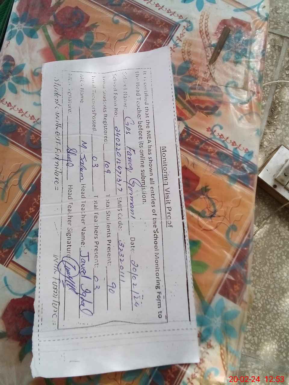 | EMIS Code: 32320111 | Name of School: GPS FAROOQ GURMANI | |||