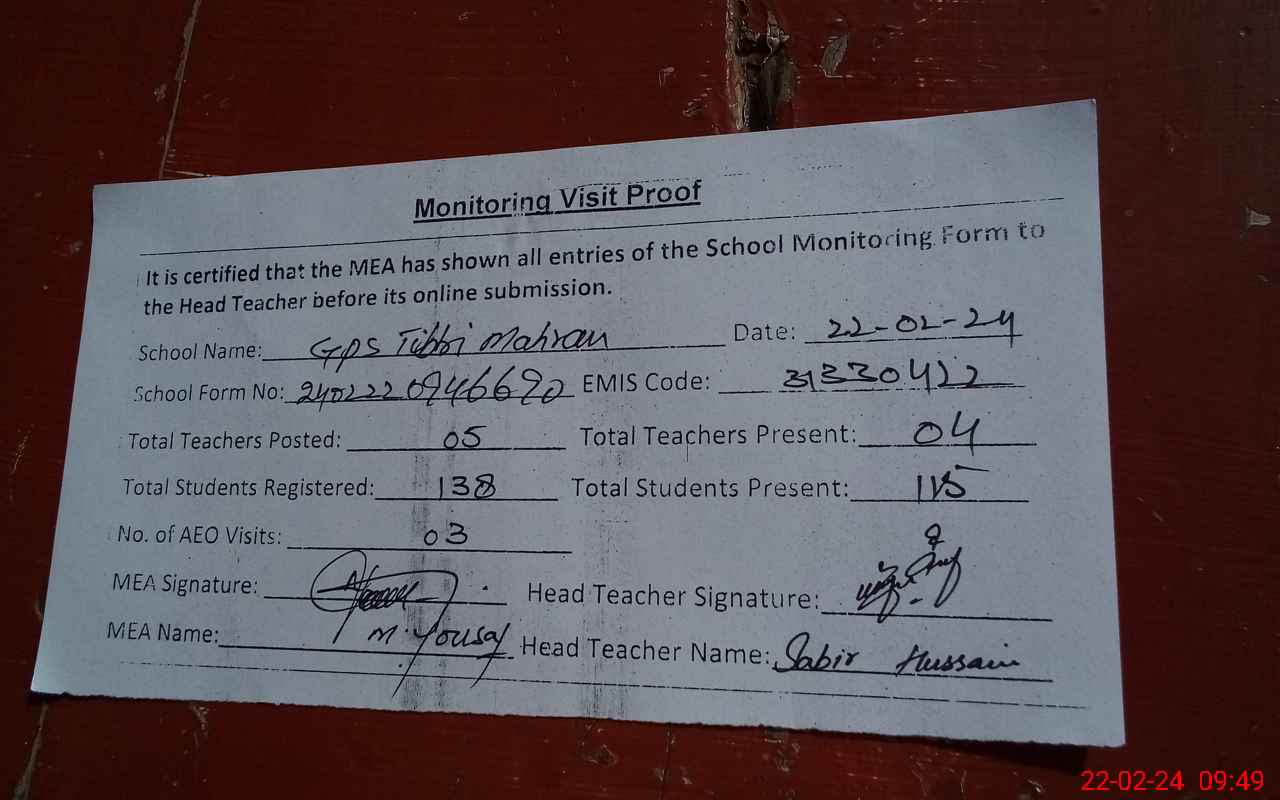 | EMIS Code: 31330422 | Name of School: GPS TIBBI MAHARAN | |||