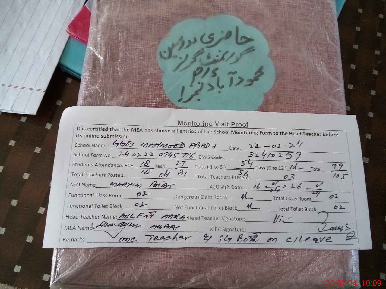 | EMIS Code: 32410259 | Name of School: GGPS MEHMOOD ABAD NO.1 | |||