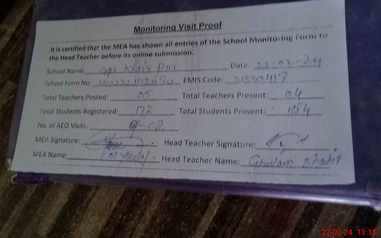 | EMIS Code: 31330419 | Name of School: GPS KHAIR PUR | |||