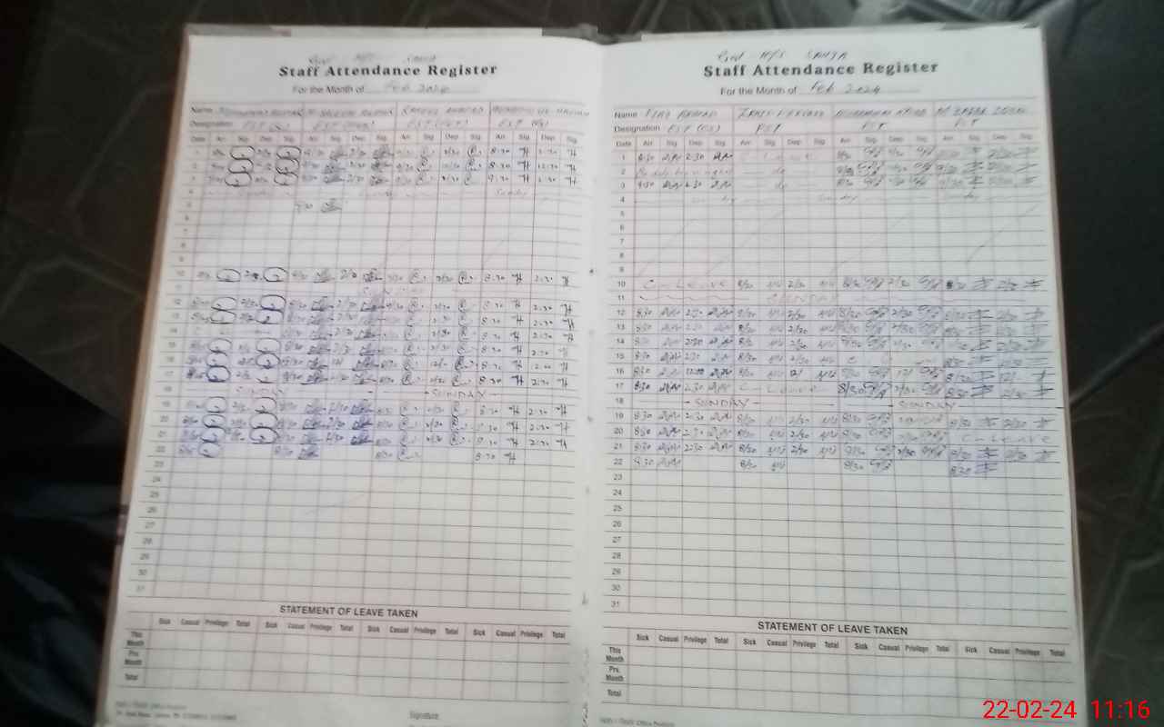 | CNIC | Full Name | Designation | R/C | Absence During Last Calender Month |