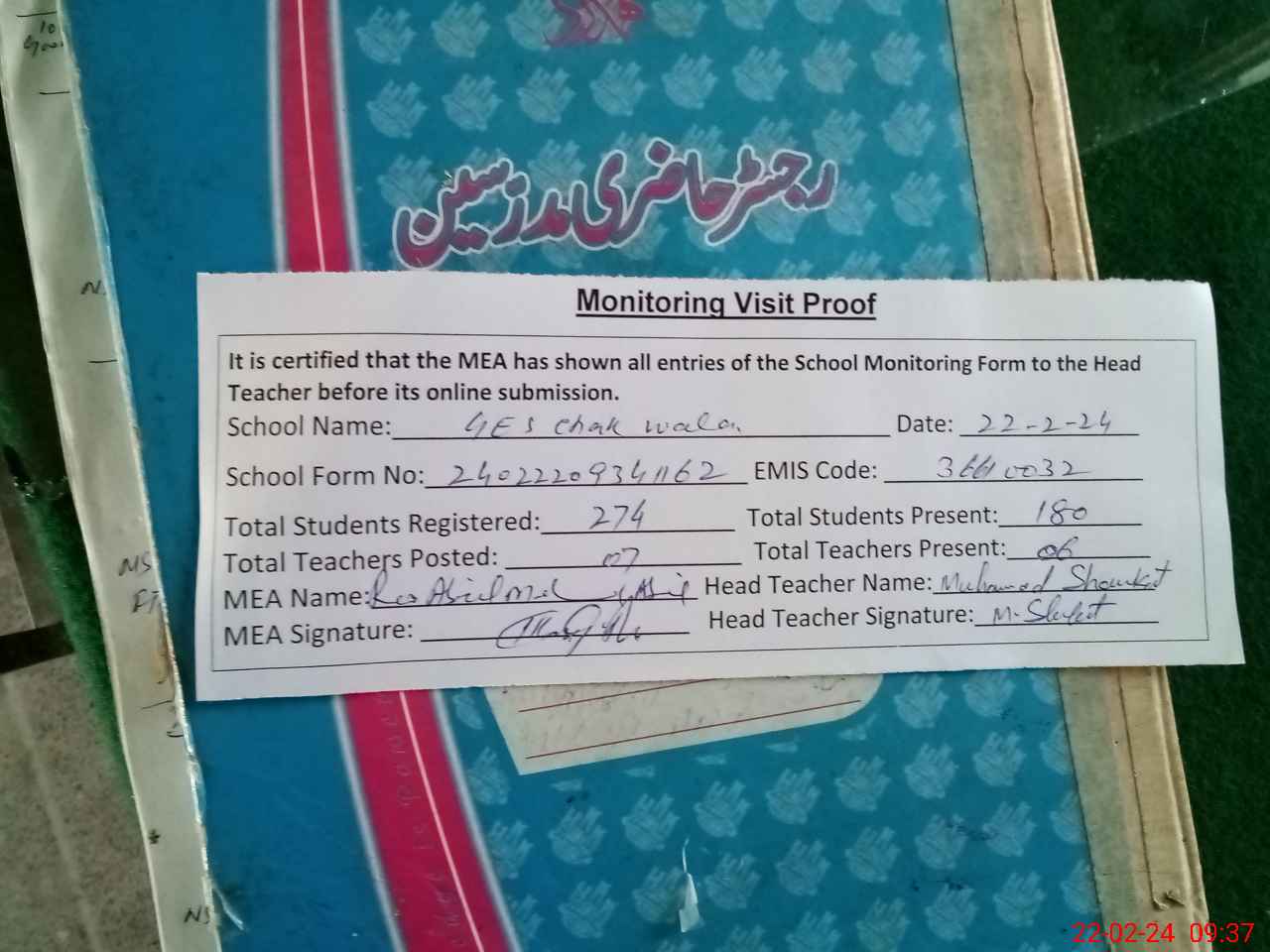 | EMIS Code: 36610032 | Name of School: GES CHAK WALA | |||