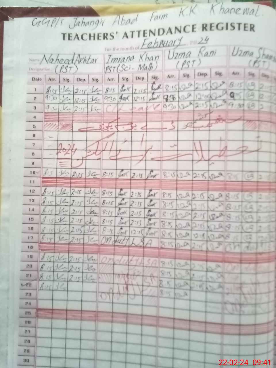 | 36**** | Uz**** Sh**** | 1 | 1 | 0 | 0 | 0 | 0 | 0 | 0 | 0 | 0 | 0 | Exam Duty |