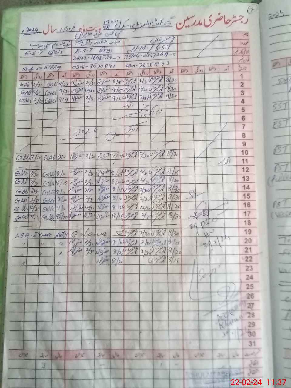 | Name: Mu**** Mu**** Kh**** Designation: (School Headmaster's/Headmistress's) SST (G) Phone/Cell Number: 03**** |