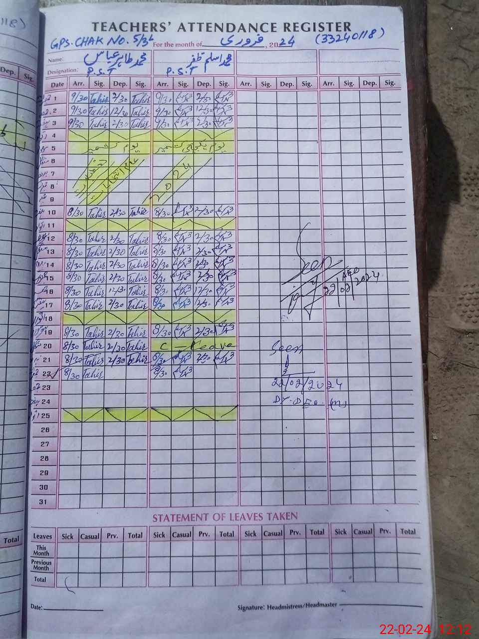 | Name: MTA**** AB**** Designation: (School Headmaster's/Headmistress's) PST Phone/Cell Number: 03**** |