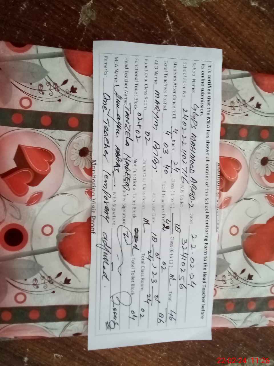 | EMIS Code: 32410256 | Name of School: GGPS MEHMOOD ABAD NO. 2 | |||