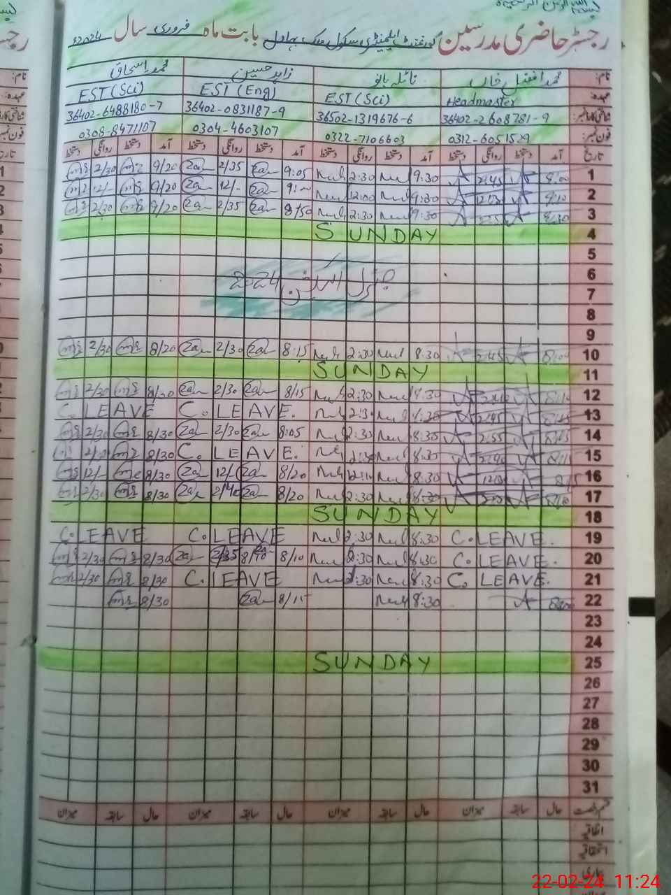 | Name: MU**** AF**** KH**** Designation: (School Headmaster's/Headmistress's) SST (GENERAL) Phone/Cell Number: 03**** |
