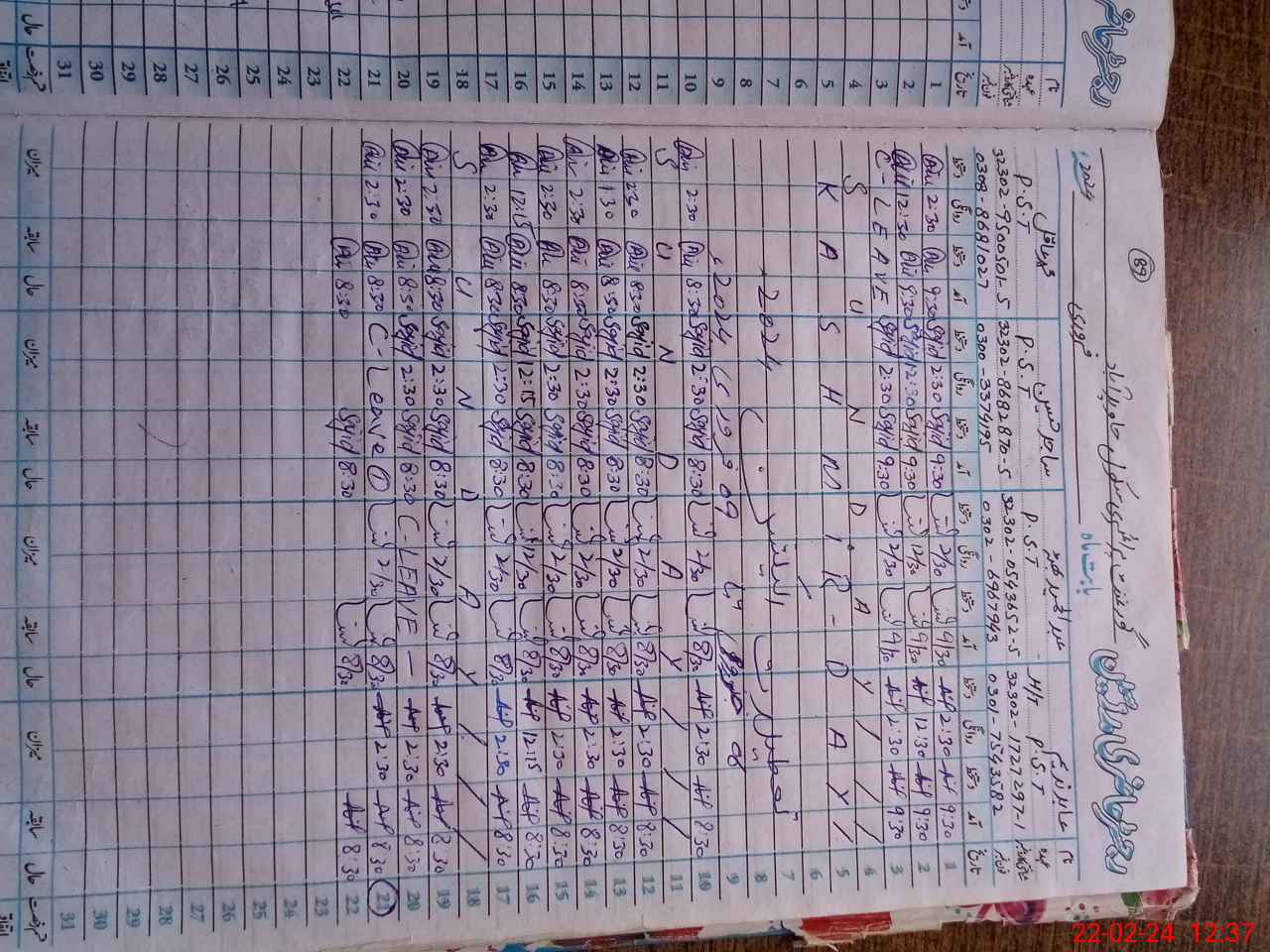 | Leave | Duty | Absent | Maternity | Medical | Ex- Pak |