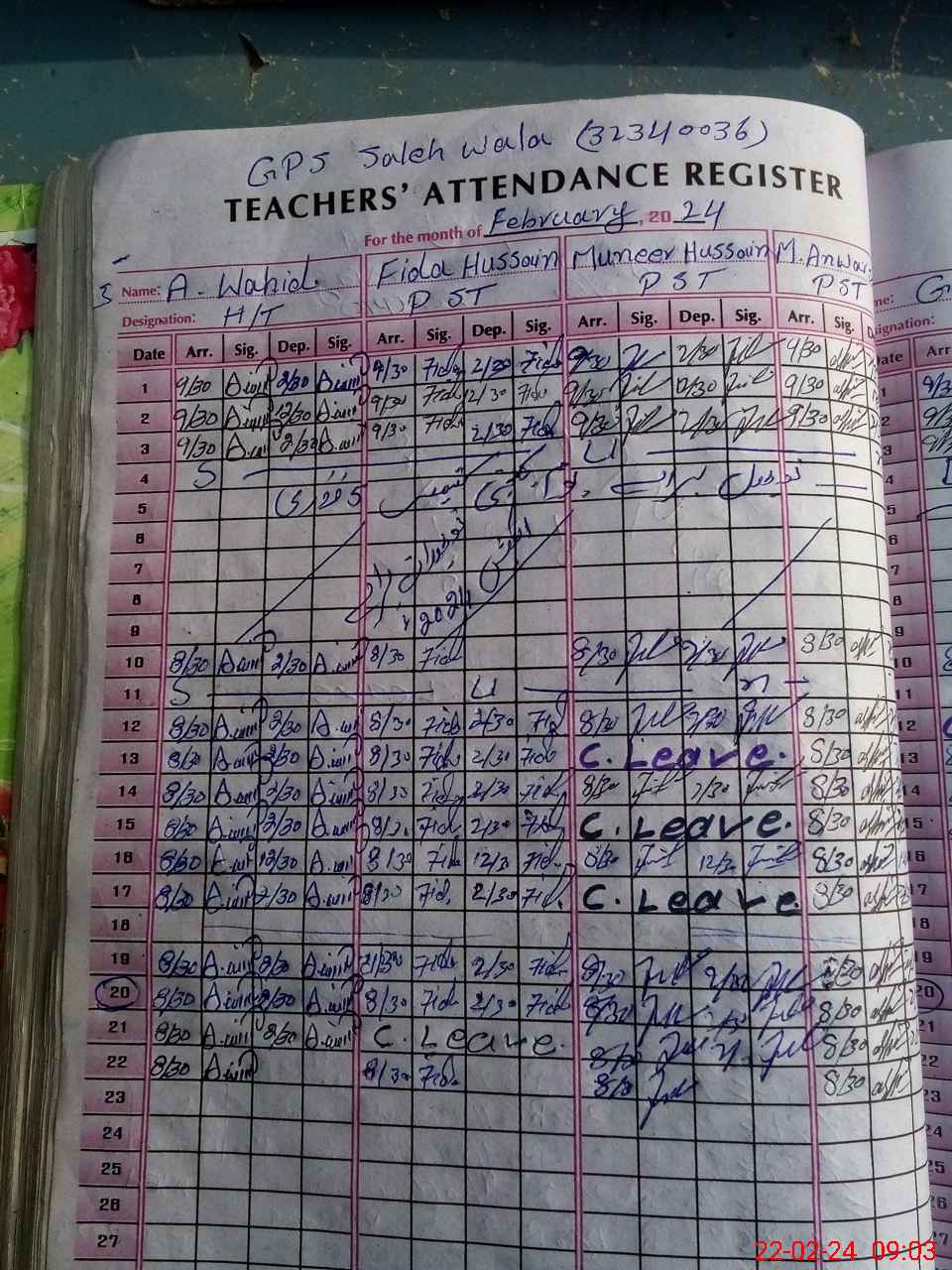 | Remarks (Use Separate Page if Required): Fida Hussain PST is a present | |||||