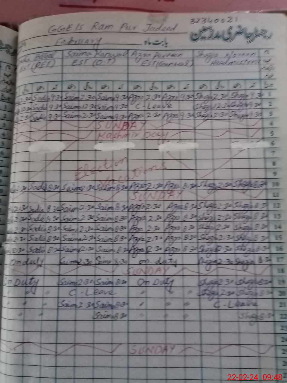 | 32**** | Az**** Pa**** | 3 | 1 | 0 | 0 | 0 | 0 | 0 | 0 | 0 | 0 | 0 | Exam Duty |