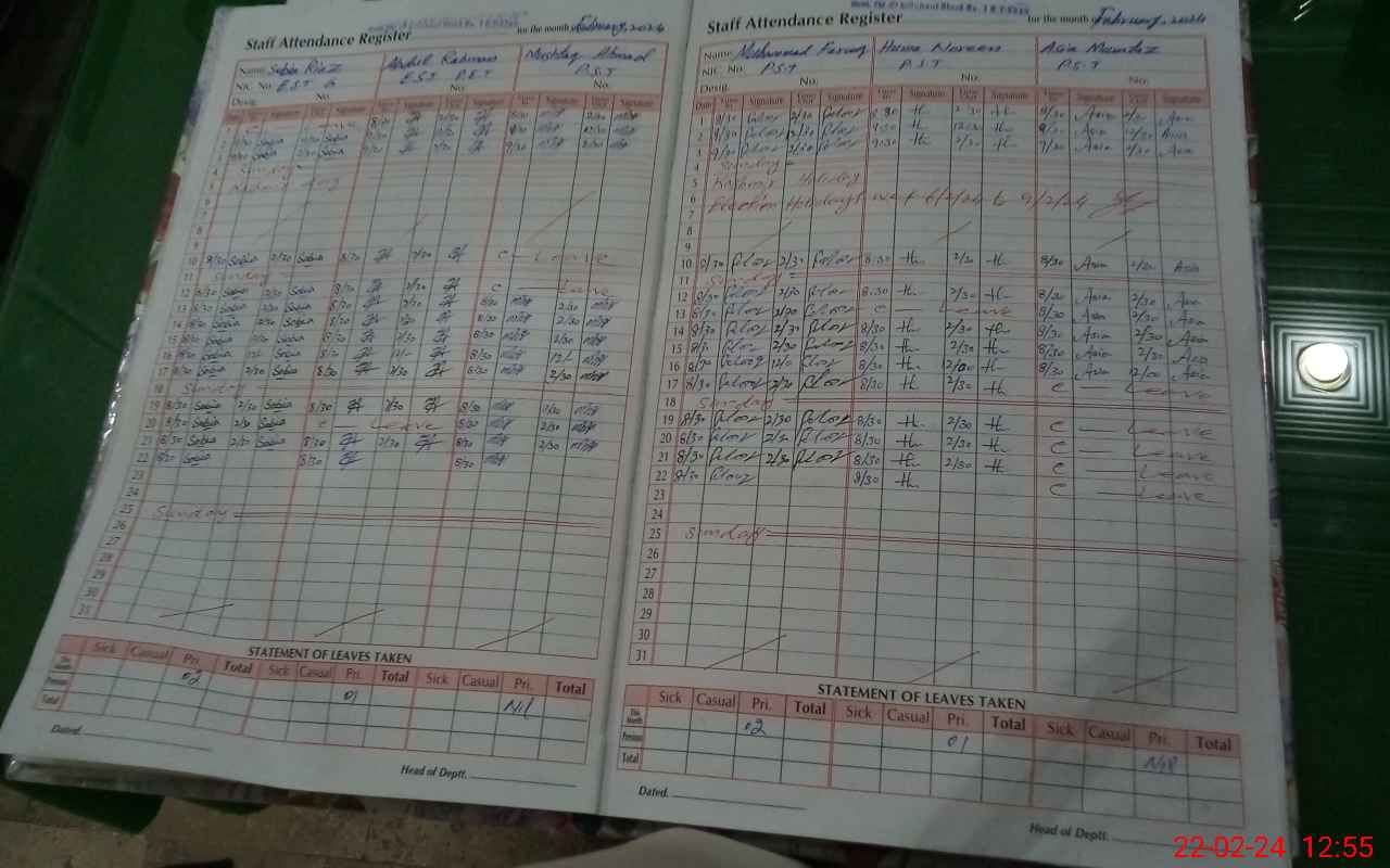 | CNIC | Full Name | Designation | R/C | Absence During Last Calender Month |