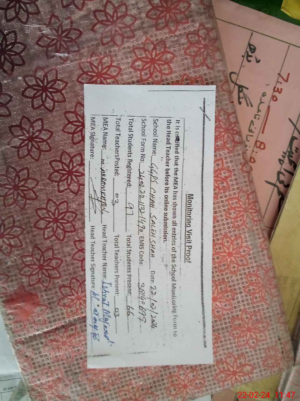 | EMIS Code: 38140699 | Name of School: GGPS CHAH SALEH SHAH | |||