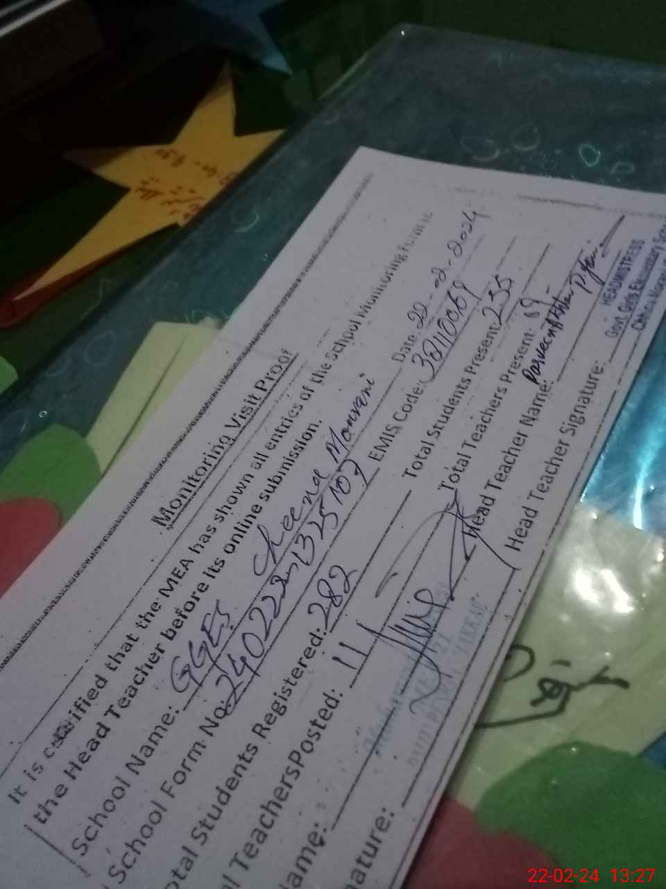 | Attendance Register | Head Teacher | MEA with School | Visit Proof |