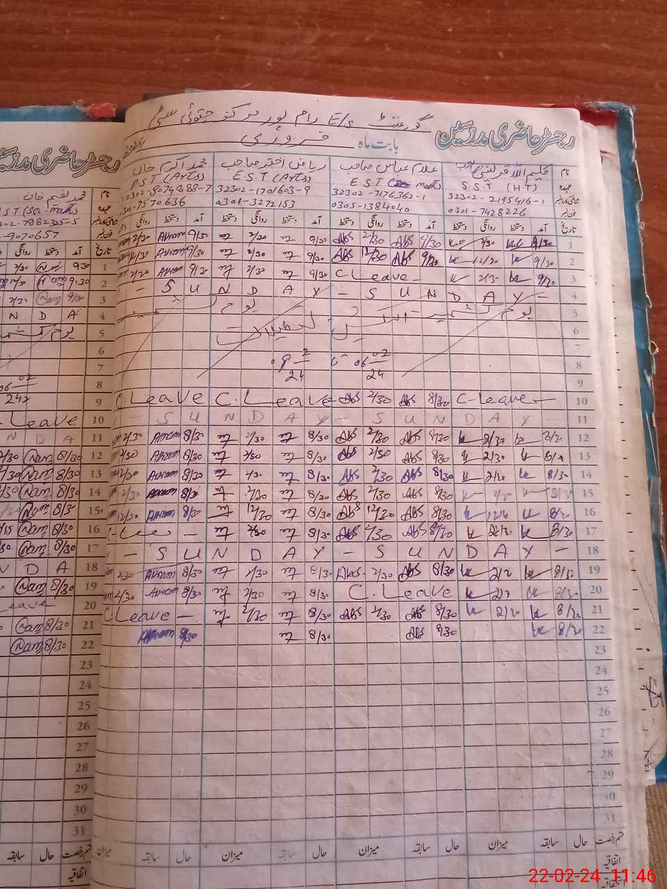 | CNIC | Full Name | Designation | R/C | Absence During Last Calender Month |
