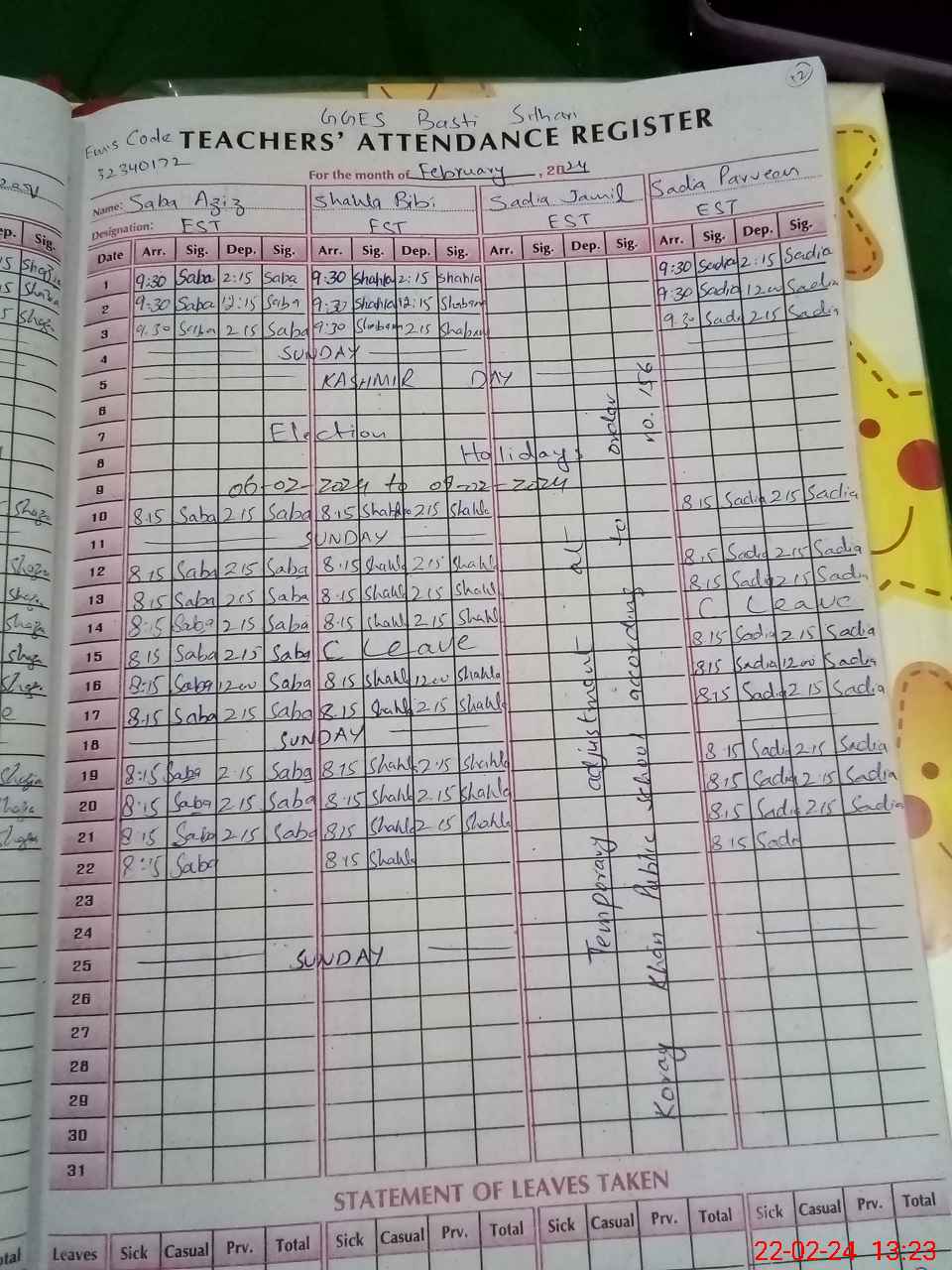 | Leave | Duty | Absent | Maternity | Medical | Ex- Pak |