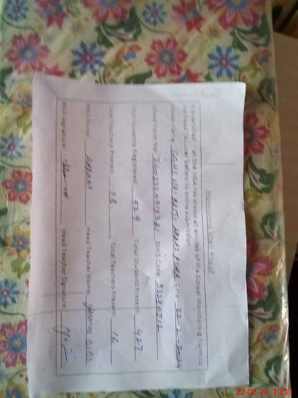 | Name: Ya**** Bi**** Designation: (School Headmaster's/Headmistress's) SSt Phone/Cell Number: 03**** |