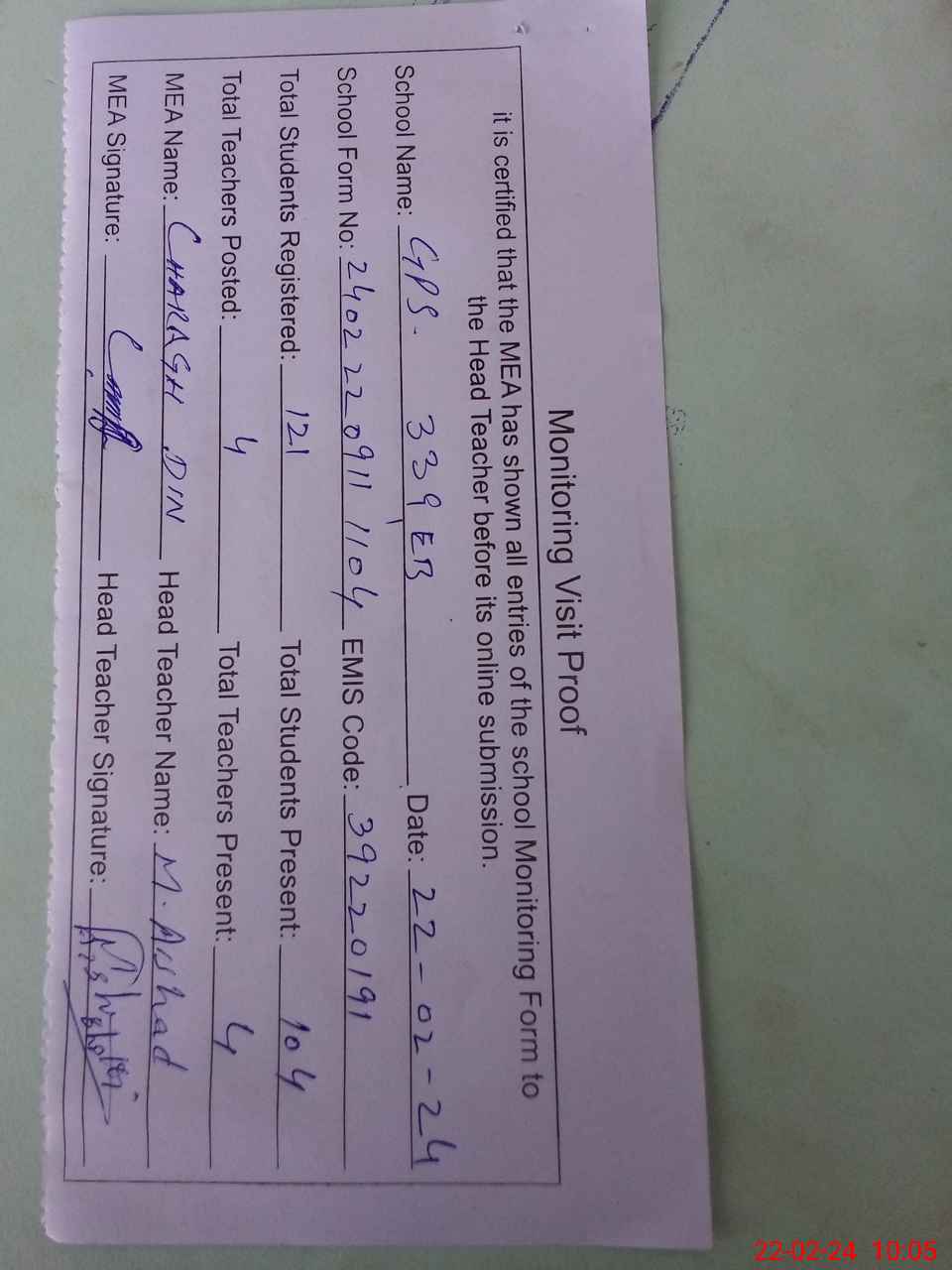| EMIS Code: 39220191 | Name of School: GPS 339 EB | |||
