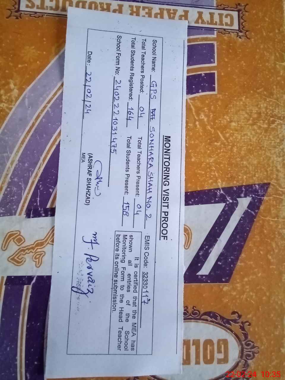 | EMIS Code: 32330117 | Name of School: GPS SONHANRA SHAH NO.2 | |||