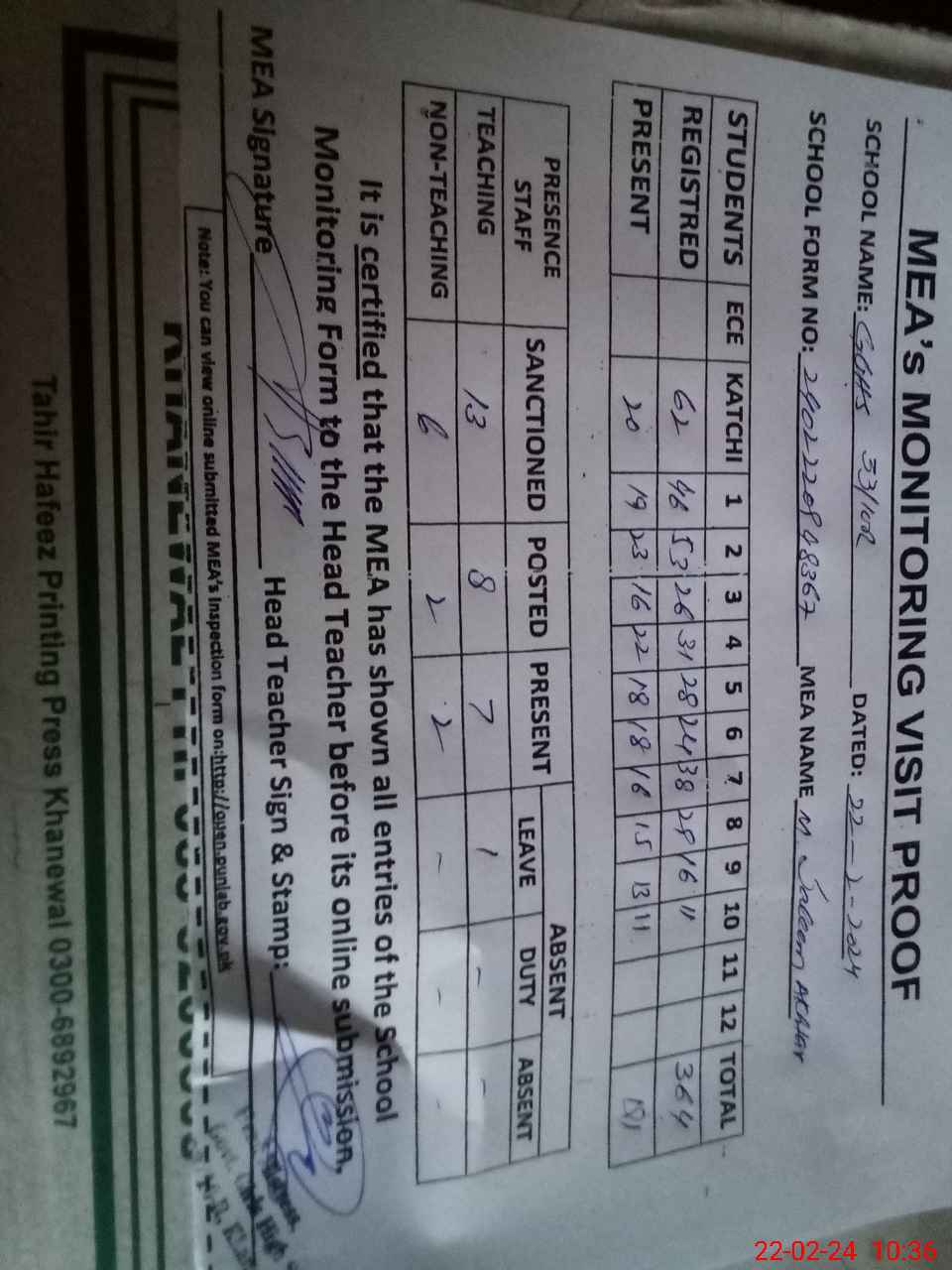 | EMIS Code: 36420120 | Name of School: GGHS 33/10-R, KACHA KHUH | |||