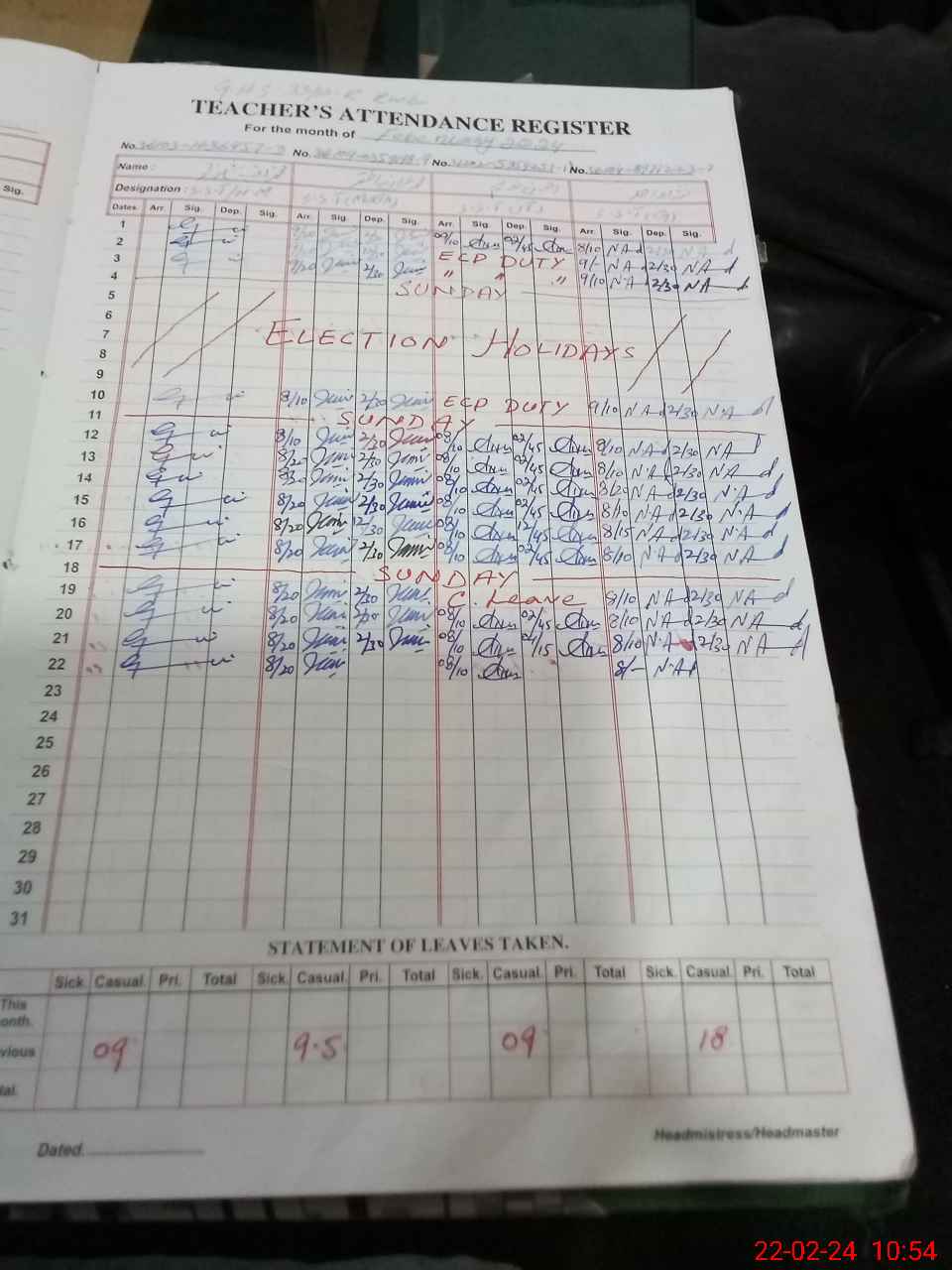 | 36**** | Mu**** Da**** Sa**** | 1 | 2 | 0 | 0 | 0 | 0 | 0 | 0 | 0 | 2 | Exam Duty | |