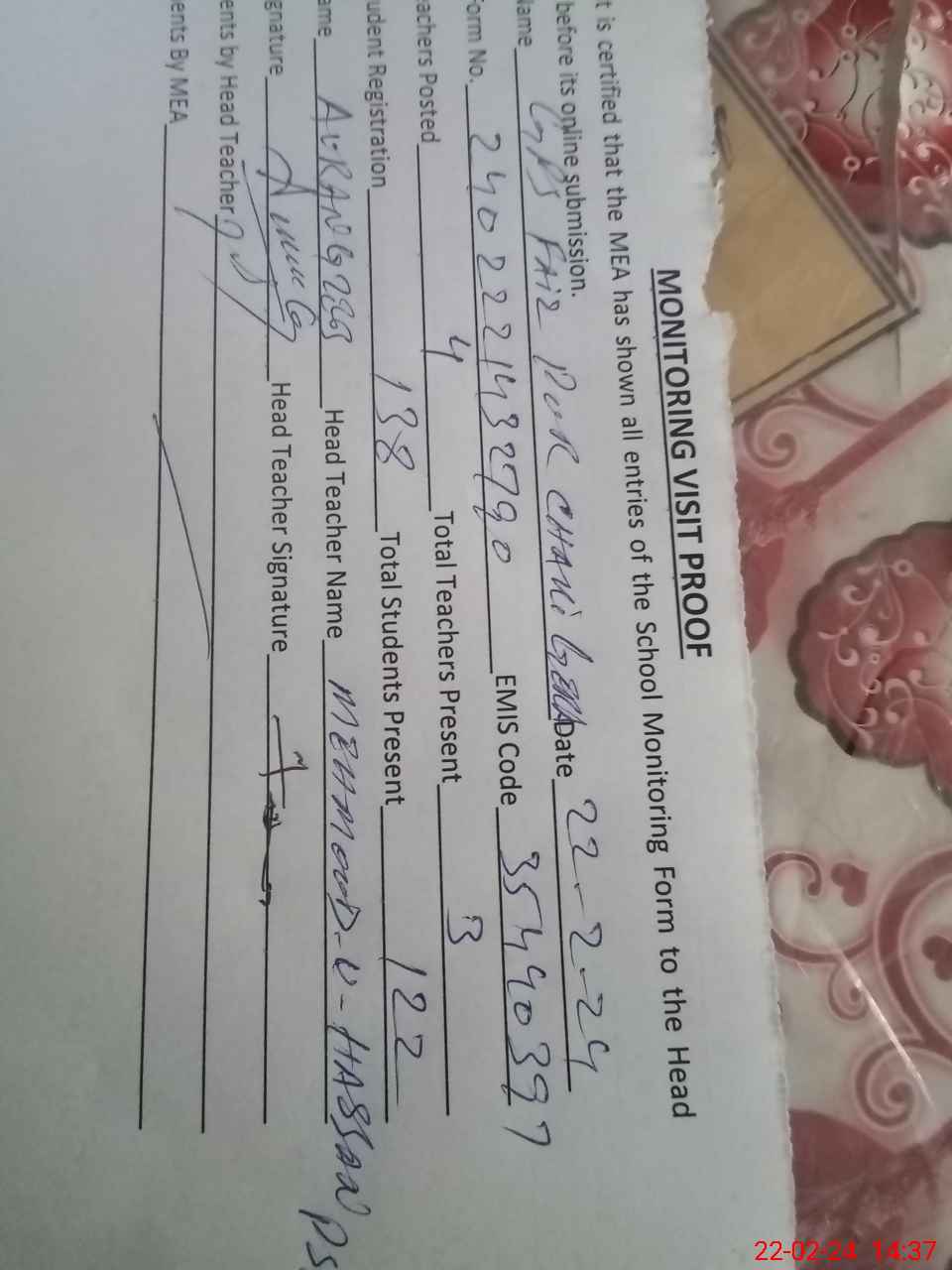 | EMIS Code: 35440397 | Name of School: GPS FAIZE PUR CHAKI GHERA | |||