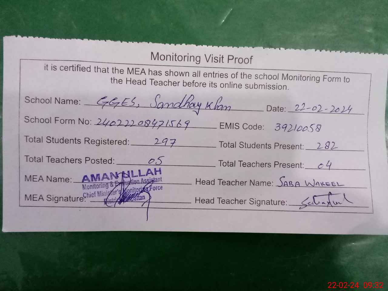 | EMIS Code: 39210058 | Name of School: GGES SANDHAY KHAN | |||