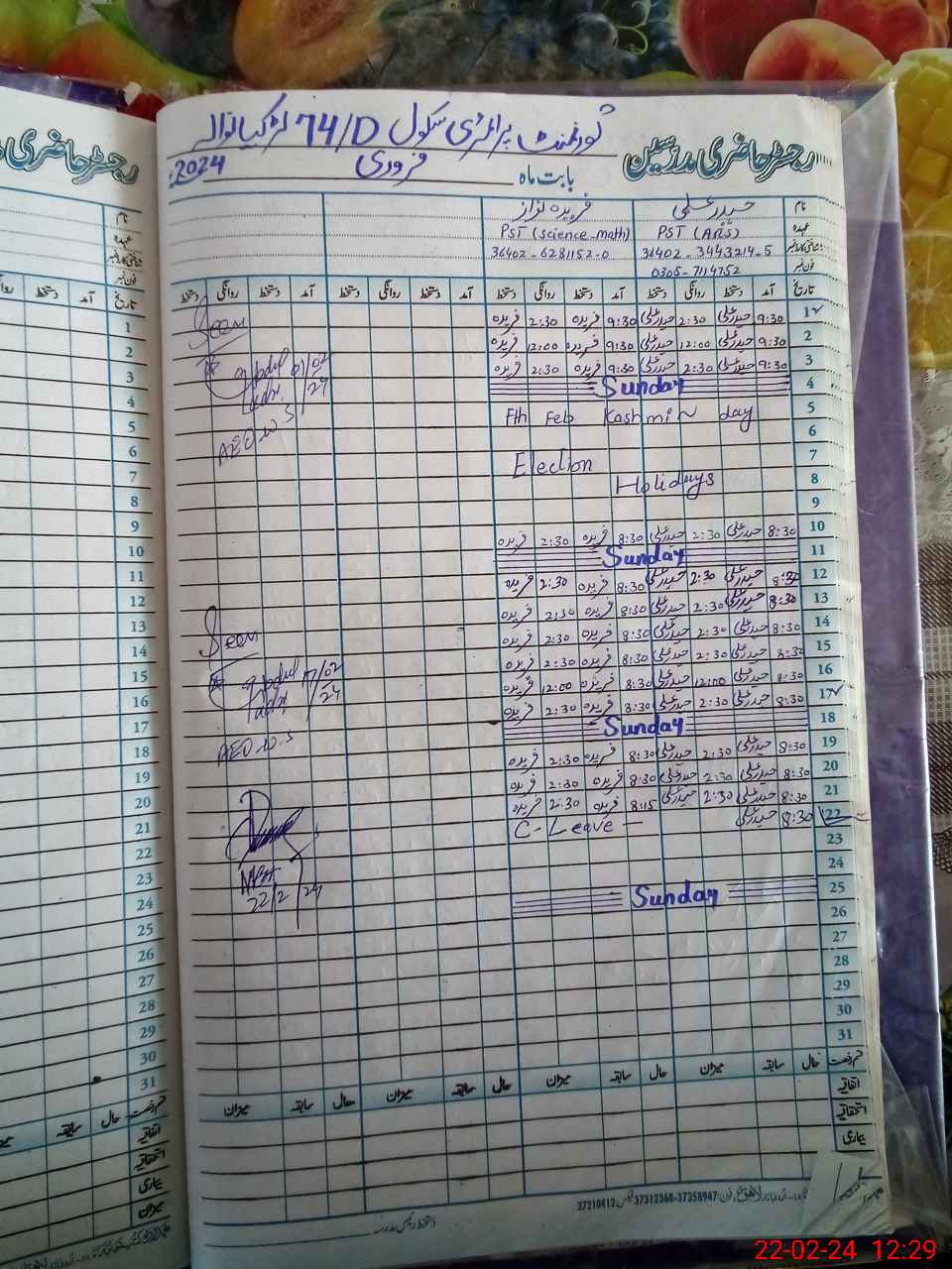 | Name: HA**** AL**** Designation: (School Headmaster's/Headmistress's) PST Phone/Cell Number: 03**** |