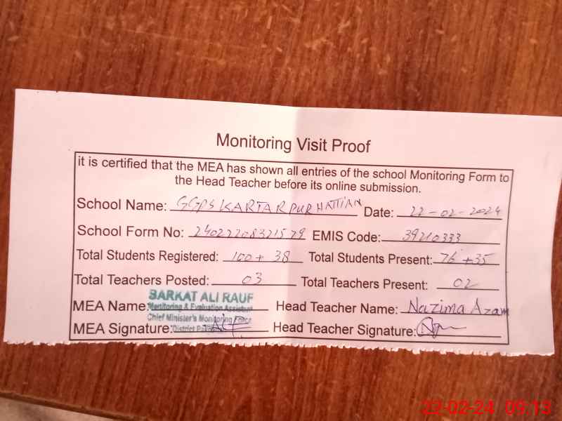 | EMIS Code: 39210333 | Name of School: GGPS KARTAR PUR HATTIAN | |||