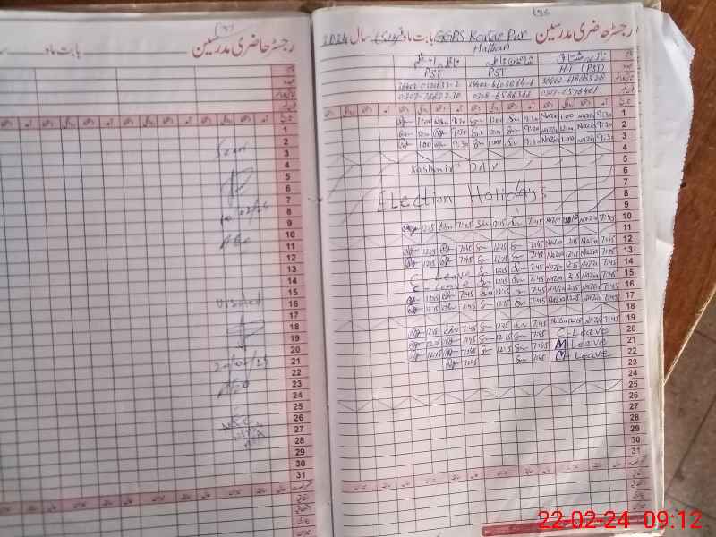 | CNIC | Full Name | Designation | R/C | Absence During Last Calender Month |