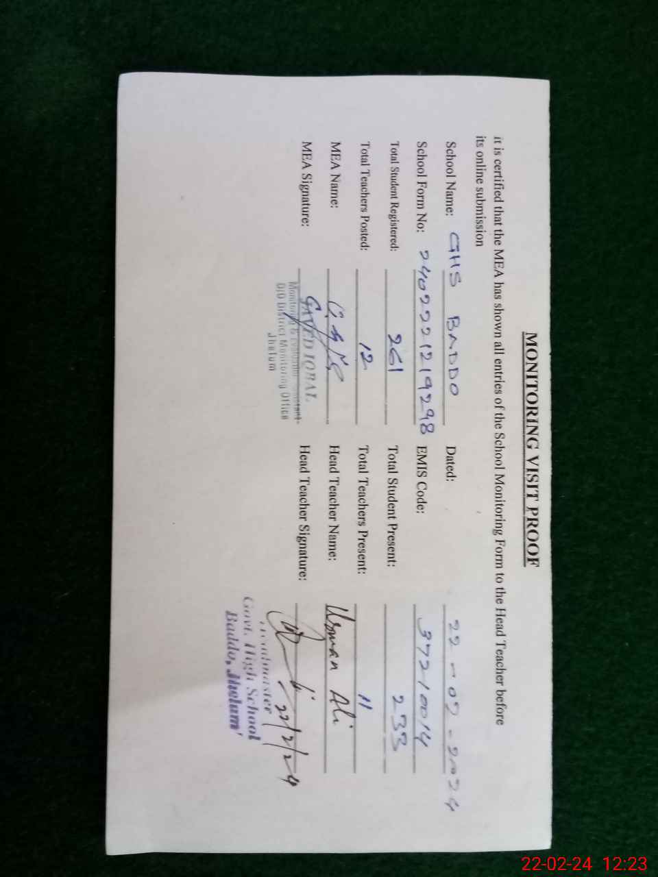 | EMIS Code: 37210014 | Name of School: GHS BADDO | |||