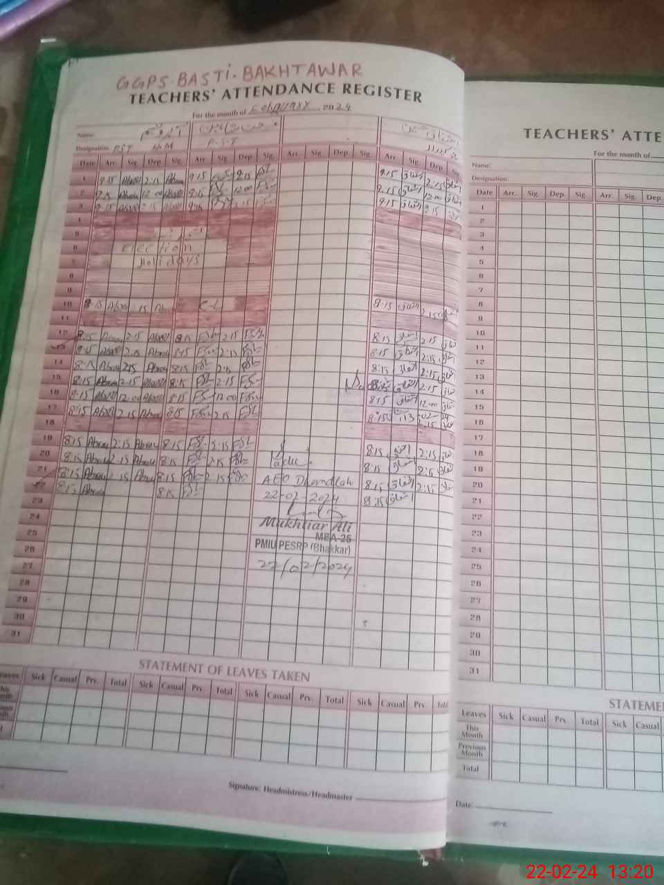 | Name: AB**** NA**** Designation: (School Headmaster's/Headmistress's) PST Phone/Cell Number: 03**** |