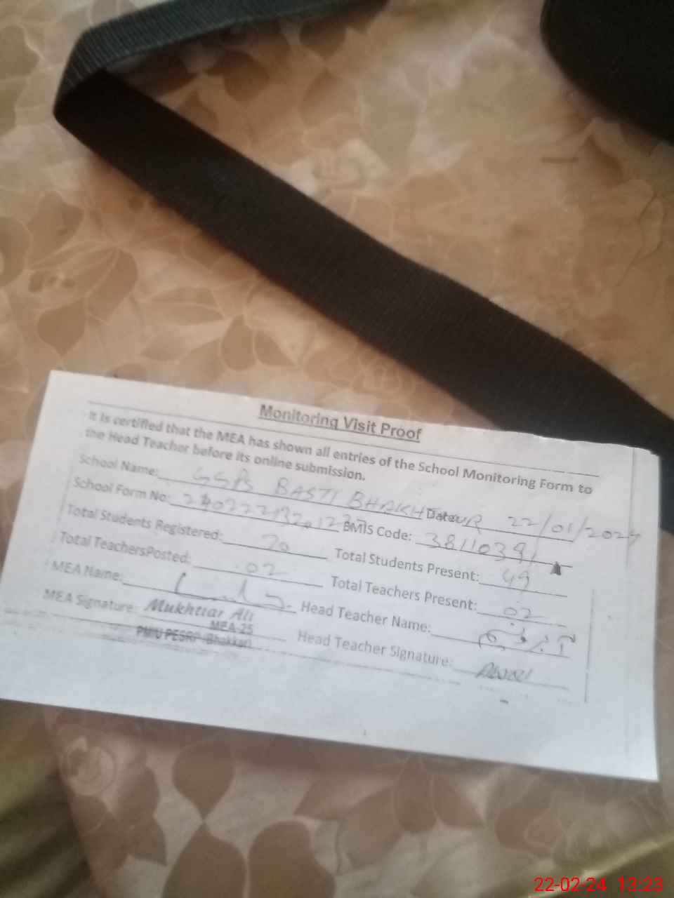 | Attendance Register | Head Teacher | MEA with School | Visit Proof |