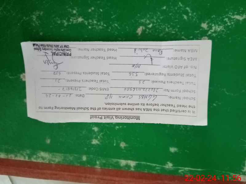 | Certified that this School was Inspected by the Undersigned MEA/DMO Today and the Information Stated Above is as Per Record. | |||||