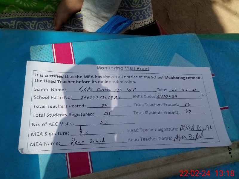 | EMIS Code: 31310439 | Name of School: GGPS CHAK NO 4/P | |||