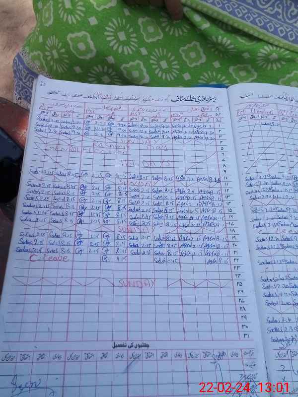 | CNIC | Full Name | Designation | R/C | Absence During Last Calender Month |