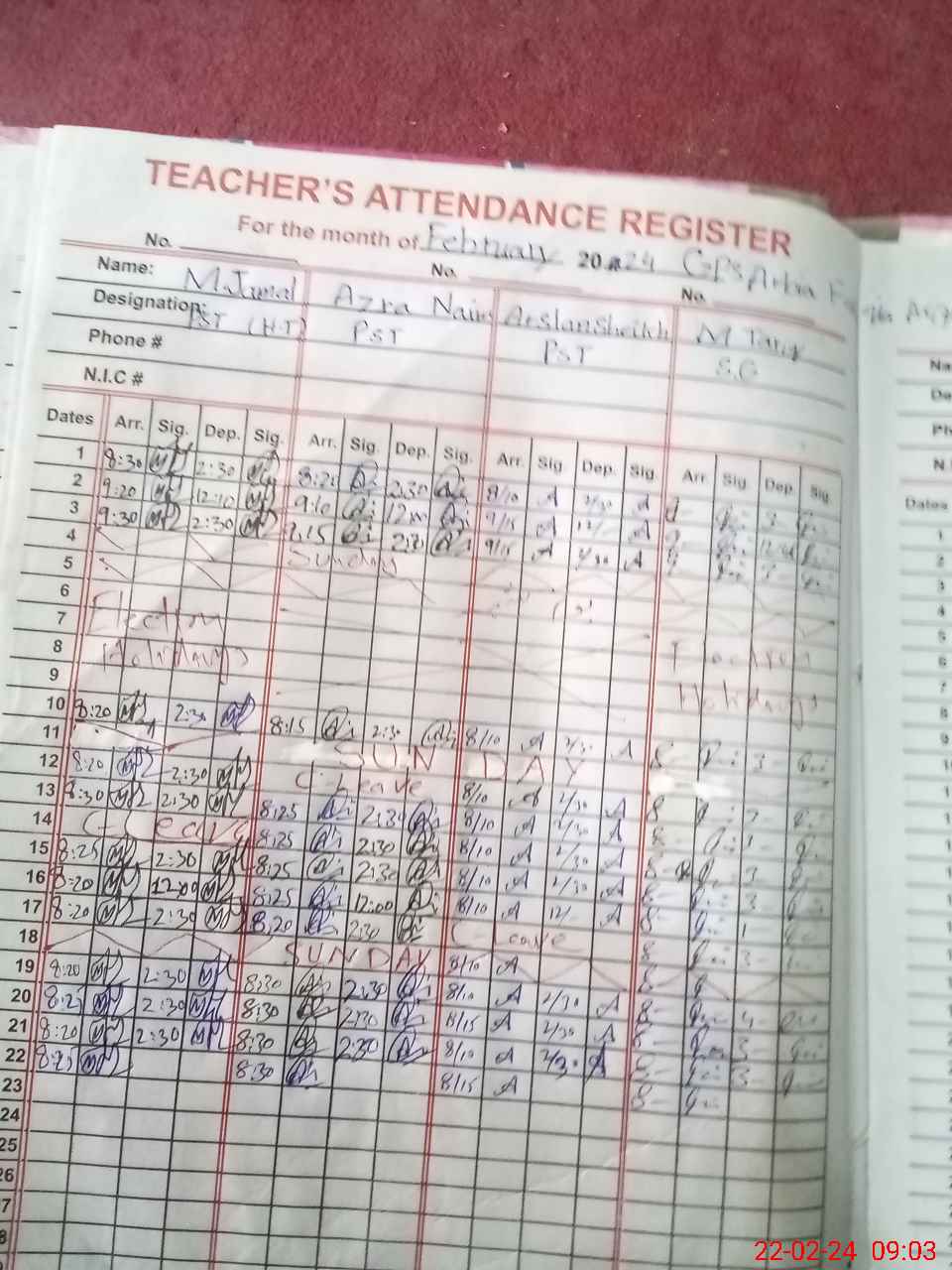 | Name: MU**** JA**** Designation: (School Headmaster's/Headmistress's) PST Phone/Cell Number: 03**** |