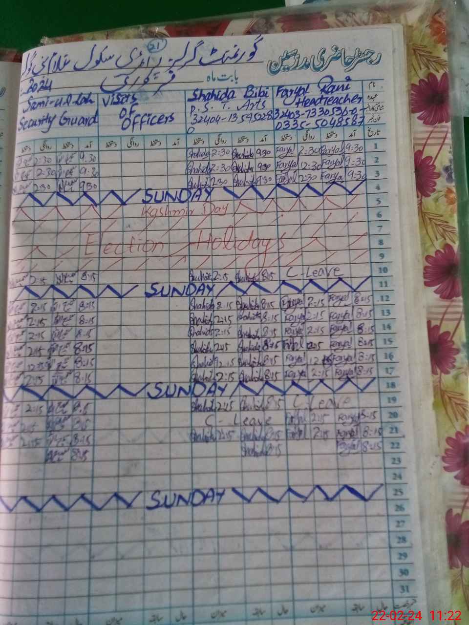 | Name: Fa**** Ra**** Designation: (School Headmaster's/Headmistress's) PST Headmistress Phone/Cell Number: 03**** |