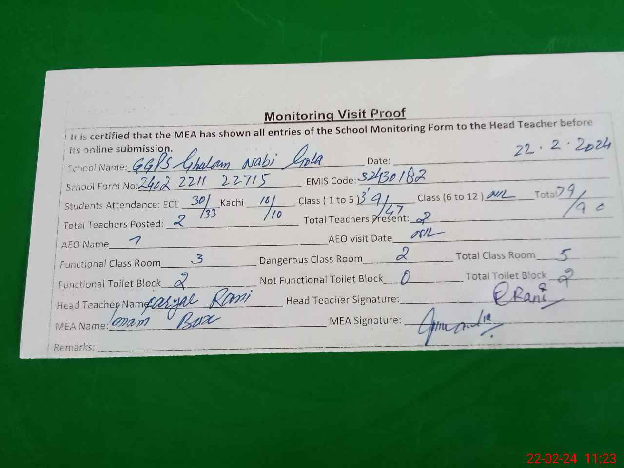 | EMIS Code: 32430182 | Name of School: GGPS GHULAM NABI GOLA | |||