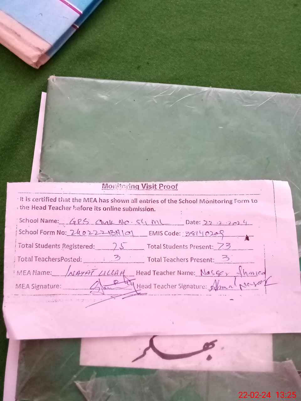 | EMIS Code: 38140209 | Name of School: GPS CHAK NO 54 ML | |||